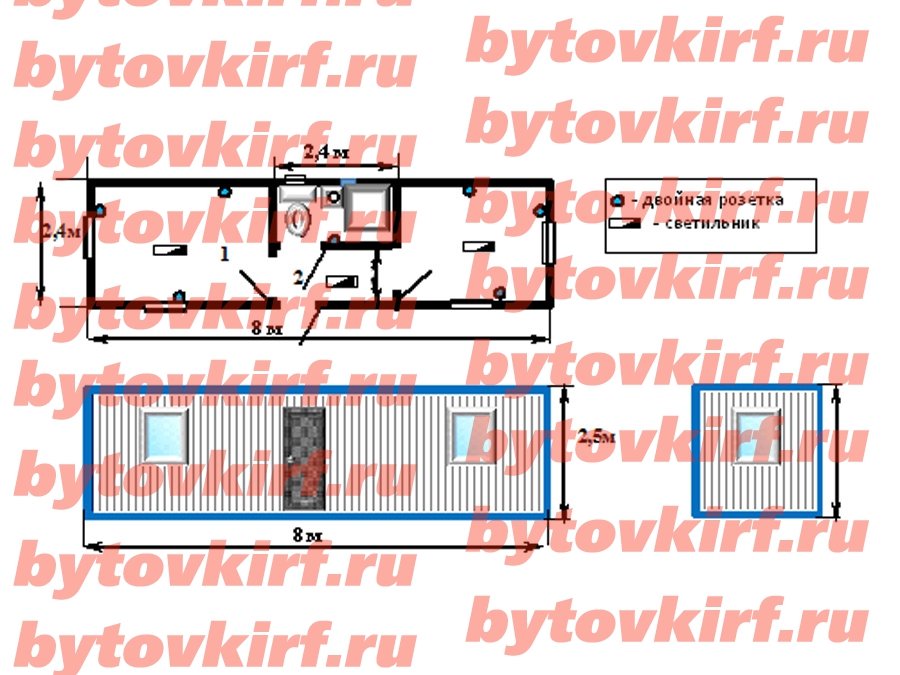 ООО "Бытовки-РФ"Проекты Коммерческие предложения → Жилая металлическая бытовка 8м